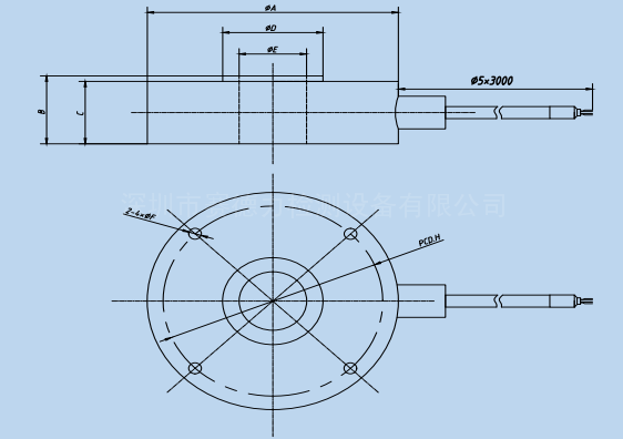 量程/CAP(N) ∅A B C ∅D ∅E ∅F H 500 40 20 18 11 8 2.6 33 1K 40 20 18 11 8 2.6 33 2K 40 20 18 11 8 2.6 33 5K 40 20 18 11 8 2.6 33 10K 80 25 23 32 21.5 4.05 70 20K 80 25 23 32 21.5 4.05 70 50K 80 25 23 32 21.5 4.05 70